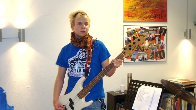 Vi har til daglig hjemme i skolens musiklokale, der består af tre rum, men kan også være i hallen eller gå ud i den friske luft.